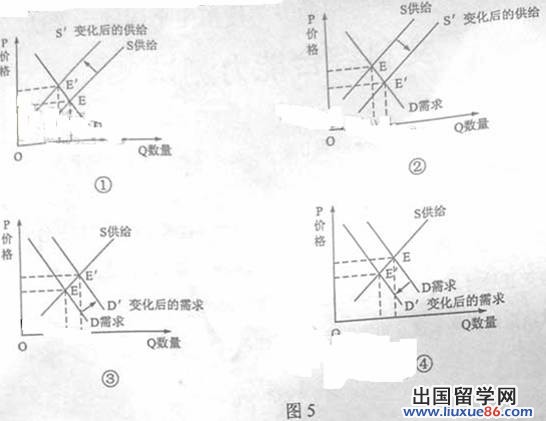 12.2012年,某縣農(nóng)民種植的土豆產(chǎn)量增大,但市場(chǎng)沒(méi)有相應(yīng)的擴(kuò)充,農(nóng)民不得不低價(jià)銷(xiāo)售,收入不增反降。圖5的①②③④中,能夠反映這種“豐產(chǎn)不豐收”經(jīng)濟(jì)現(xiàn)象的是