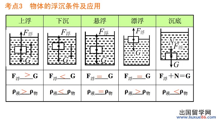 同學(xué)們復(fù)習(xí)《物體的浮沉條件及應(yīng)用》時(shí)要注意重難點(diǎn):重點(diǎn):掌握物體的浮沉條件及浮力應(yīng)用。難點(diǎn):通過調(diào)節(jié)浮力和重力的關(guān)系來得到或增大可利用浮力,初步建立應(yīng)用科學(xué)技術(shù)的意識(shí)。更多有關(guān)2014中考物理的信息可登錄出國留學(xué)網(wǎng)物理頻道,歡迎收藏本站(CTRL+D即可收藏)!
