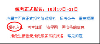 特別提醒: 關(guān)于統(tǒng)考網(wǎng)上繳費(fèi)(僅限于選擇北京、天津、河北、安徽、河南、湖南、廣西、四川報(bào)考點(diǎn)考生。注:湖南只在10月10日—31日期間支持網(wǎng)上支付。)