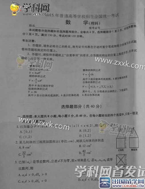 隨著一聲聲鈴響,高考宣布結(jié)束。各種不同心情的考生走出高考,不論結(jié)果,這場考試已成定局。為了更接近的估到自己的成績,高考網(wǎng)在最快的時間為您提供2015浙江高考理數(shù)真題試卷及答案,讓您在這兩天的高考中更好的預(yù)測高考各科試題走向。