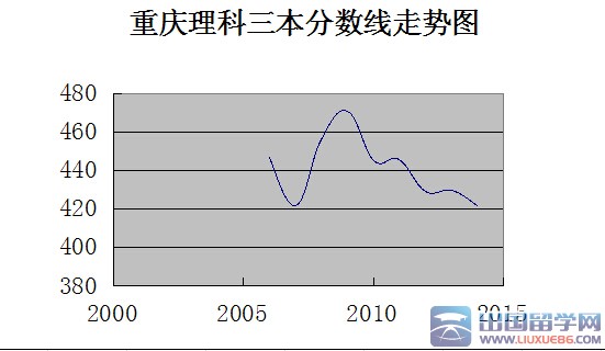 重慶理科二本分?jǐn)?shù)線2006年到2008年呈上升趨勢(shì),從2008年起分?jǐn)?shù)線開始連續(xù)下降,由上圖可以預(yù)測(cè)2015年重慶理科二本分?jǐn)?shù)線很有下降或保持不變,預(yù)計(jì)454分左右! (以上數(shù)據(jù)僅供參考!)