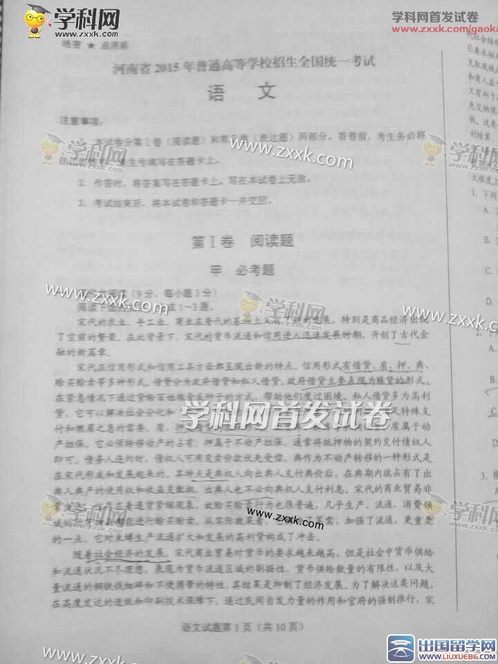 2015年高考終于開始了,考生們在考場正以飽滿的激情答題。出國留學(xué)網(wǎng)高考頻道會(huì)及時(shí)為廣大考生提供2015年河北語文高考真題及答案,剩下科目的真題和答案將在考后第一時(shí)間公布,請廣大考生及家長時(shí)時(shí)關(guān)注本站更新(ctrl+D收藏即可)。2015河北高考真題及答案一發(fā)布,您將此表頁的頭條看到,如果您沒有看到你找的真題及答案沒有看到,請按ctrl+F5進(jìn)行刷新。