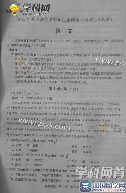 | 山東高考語(yǔ)文答案 | 山東高考數(shù)學(xué)答案 | 山東高考英語(yǔ)答案 | 山東高考理綜答案 | 山東高考文綜答案 |