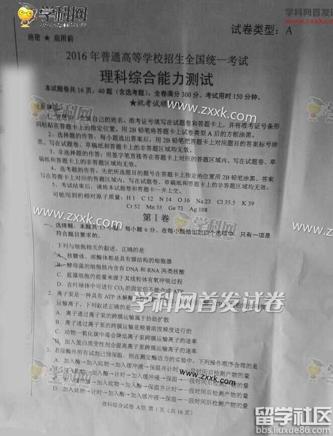 十年寒窗苦讀日,只盼金榜題名時(shí)。留學(xué)網(wǎng)高考欄目為您準(zhǔn)備了2016安徽高考理綜試題(圖片版),來看一看吧!愿你高考考出理想的成績,進(jìn)入向往的大學(xué)。