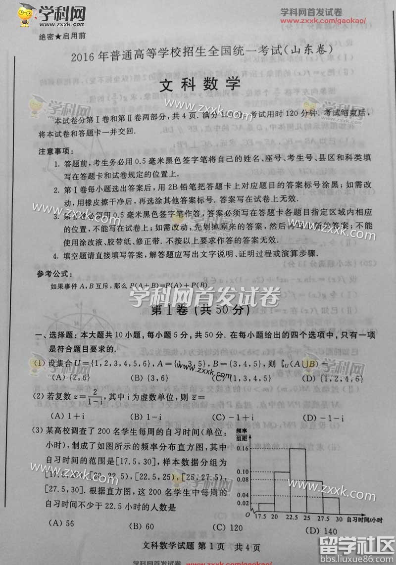 2016年高考考試已經(jīng)圓滿的結(jié)束了,以下2016年煙臺高考文科數(shù)學(xué)真題及答案(清晰版)由出國留學(xué)網(wǎng)高考欄目整理而出,希望每一個考生都能取得理想的成績!