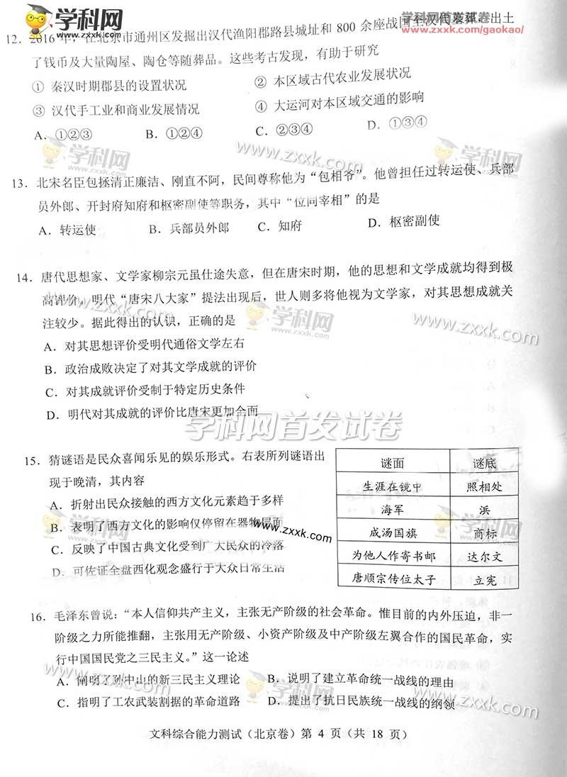 | 北京高考語(yǔ)文答案 | 北京高考數(shù)學(xué)答案 | 北京高考英語(yǔ)答案 | 北京高考理綜答案 | 北京高考文綜答案 |