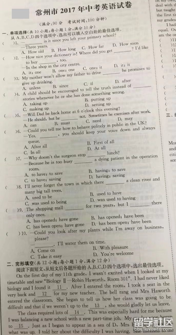 長風(fēng)破浪會有時,直掛云帆濟滄海,中考是人生的一個起點,相信自己,明天又是一和個艷陽天 !出國留學(xué)網(wǎng)中考網(wǎng)為大家提供[2017年常州中考英語試題附答案],更多中考資訊請關(guān)注我們網(wǎng)站的更新!