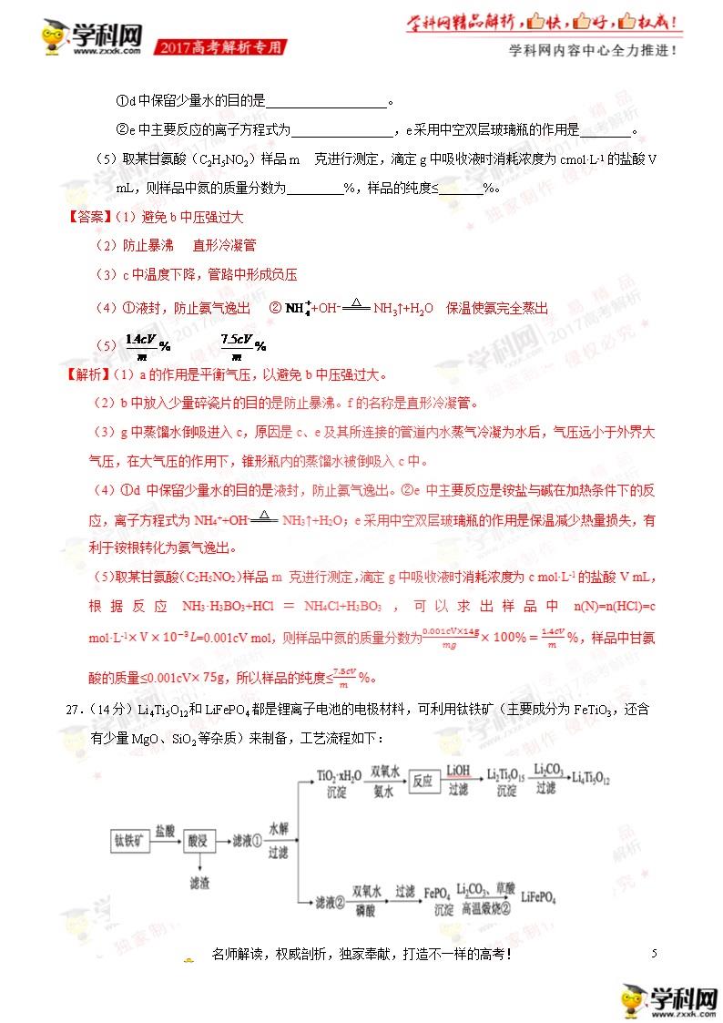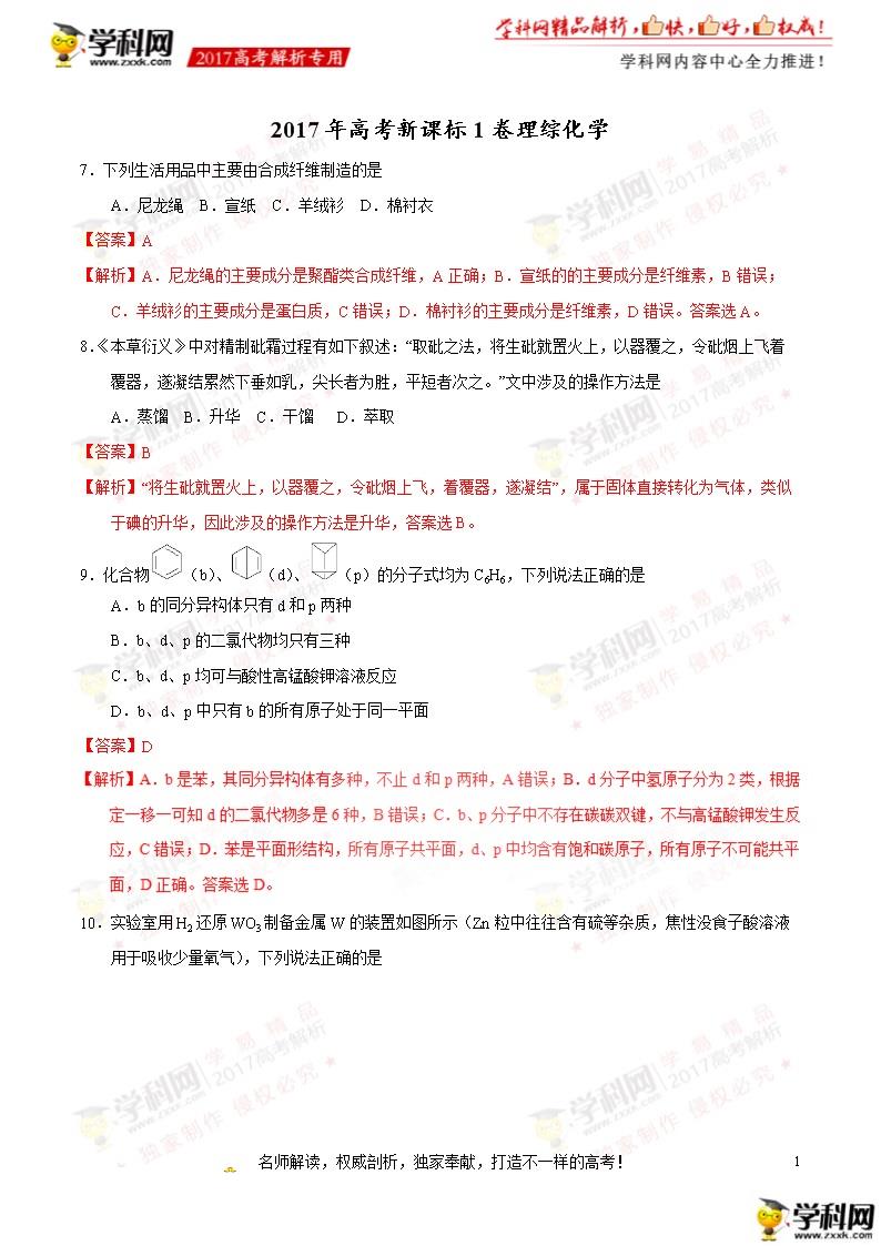 2017年全國卷1高考理綜真題及答案解析(完整版)