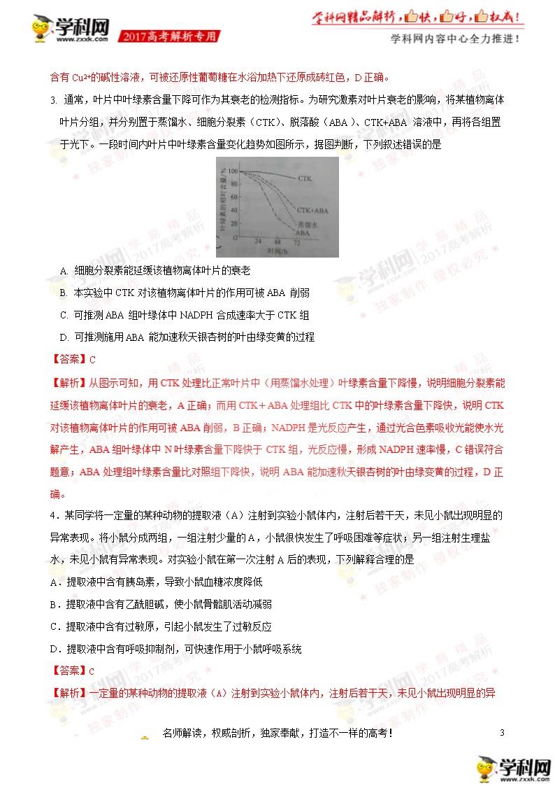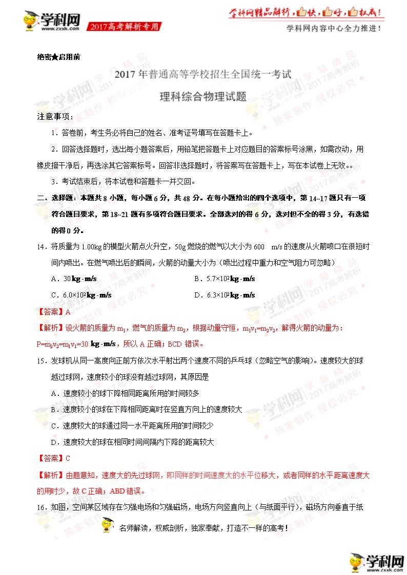 2017年全國(guó)卷1高考理綜真題及答案解析(完整版)
