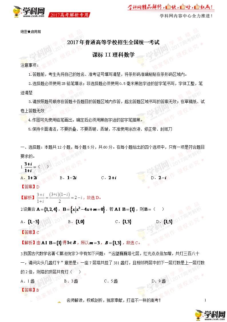 2017武威高考理科數(shù)學(xué)真題及答案解析已公布