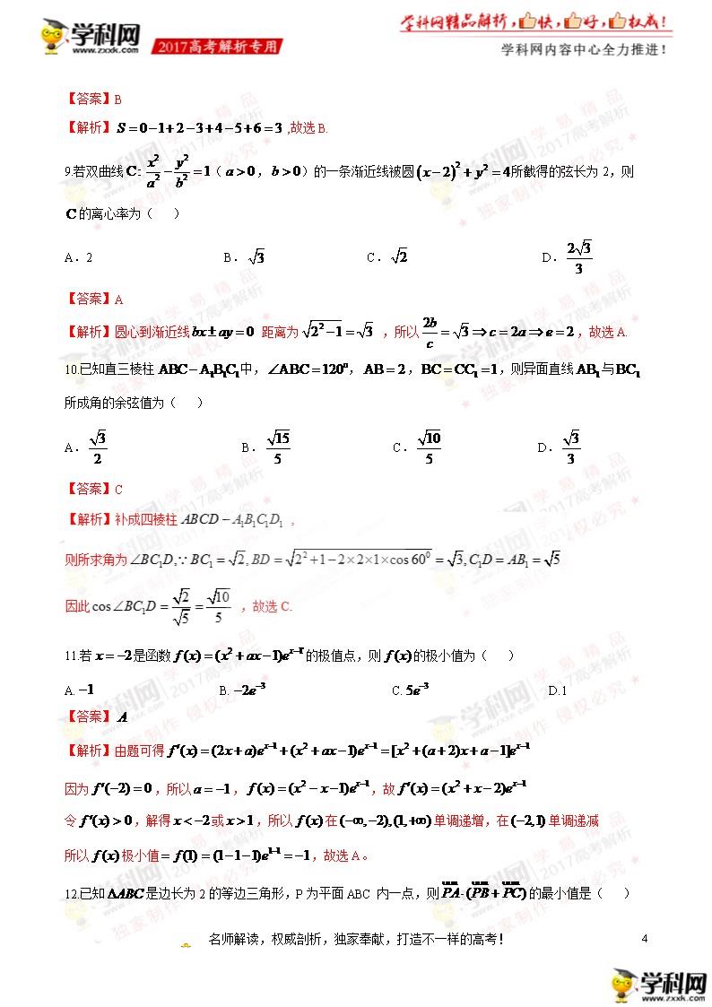 2017黑河高考理科數(shù)學(xué)真題及答案解析(圖片版)