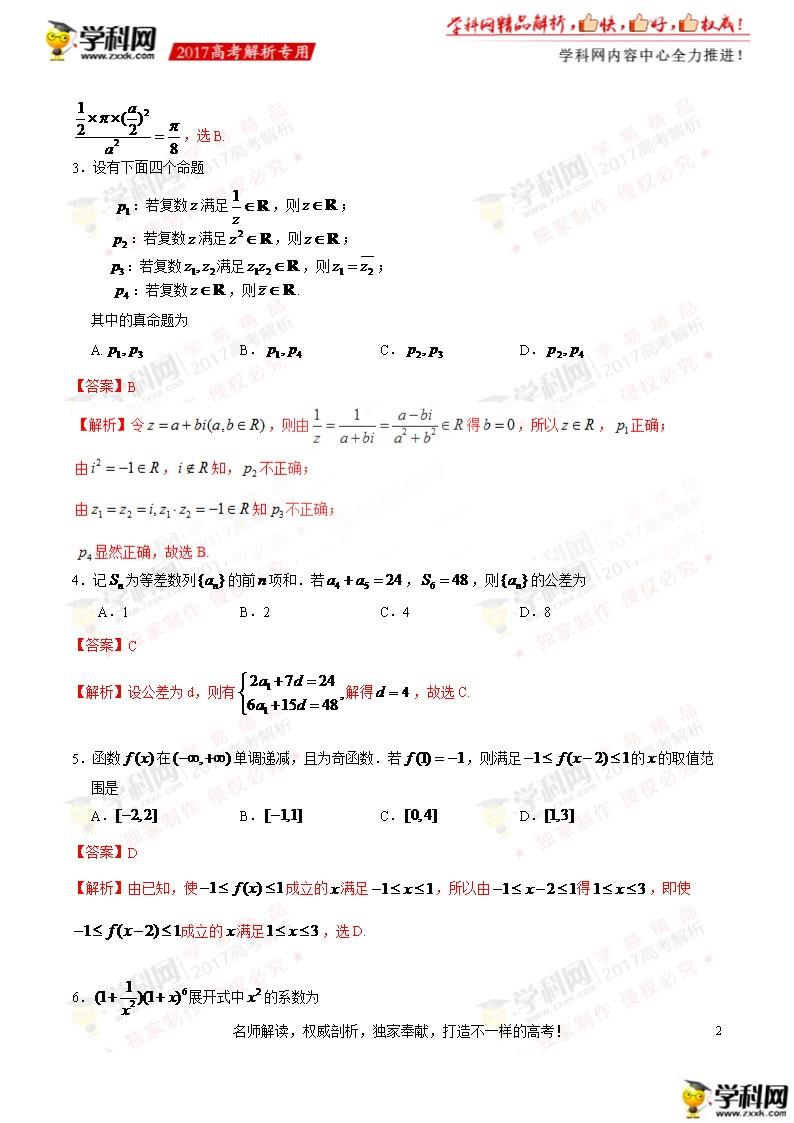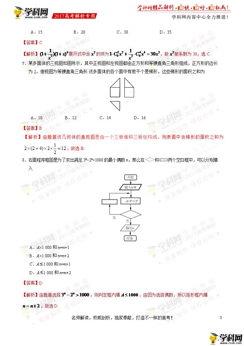 2017年忻州高考理科數(shù)學(xué)真題及答案解析