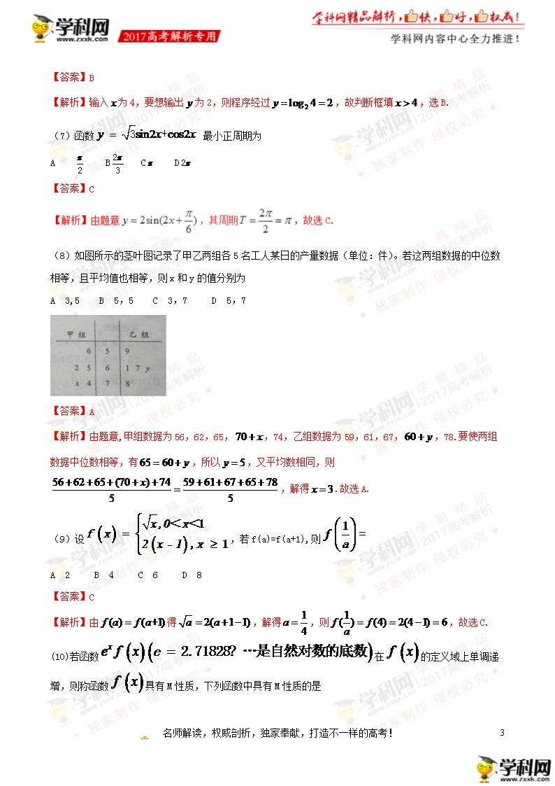 2017淄博高考文科數(shù)學(xué)答案解析已公布