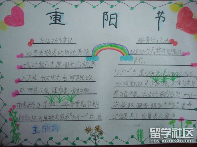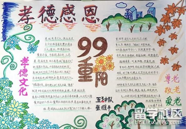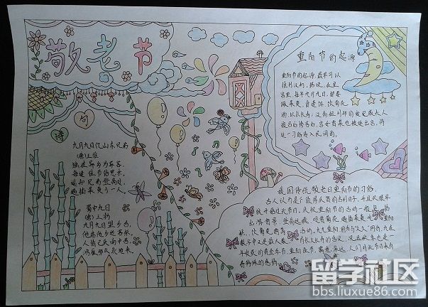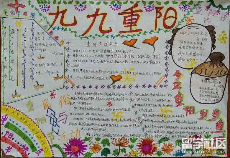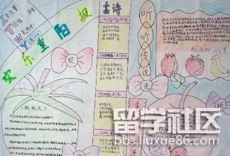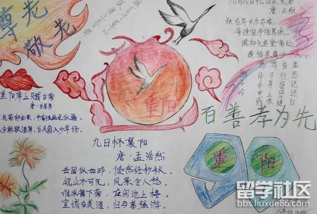 遙知兄弟登高處,遍插茱萸少一人,古人也很很關(guān)注重陽節(jié),每次重陽節(jié)都會(huì)回去看自己的長輩,下面是小編為大家?guī)淼?017年慶祝重陽節(jié)的手抄報(bào)圖片,僅供參考,更多你想要知道的信息可以關(guān)注出國留學(xué)網(wǎng),謝謝閱讀。