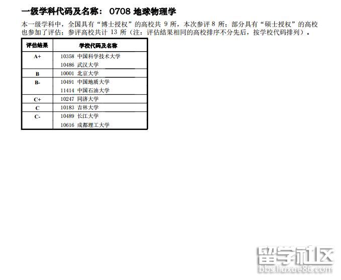 全國高校學(xué)科評估結(jié)果:一級學(xué)科地球物理學(xué)大學(xué)排名