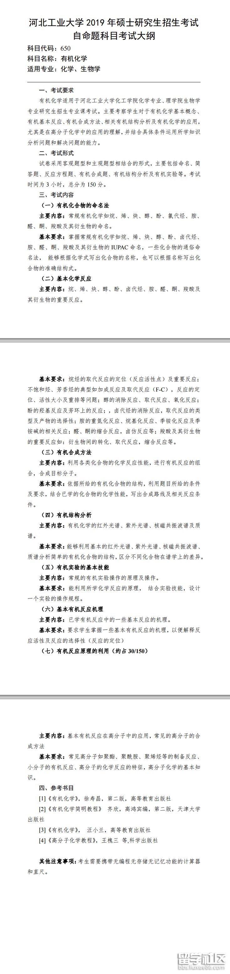 河北工業(yè)大學2019考研大綱:650有機化學