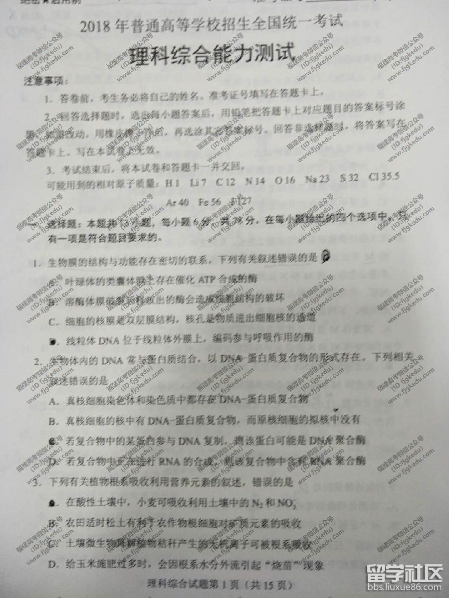 我們都知道你經(jīng)歷了人生中的最重要的一次挑戰(zhàn),或許你有過焦慮、有恐懼,也有激動,但是別怕,一切都過去了。出國留學(xué)網(wǎng)高考頻道為您提供2018年湖南高考理綜試題及答案,更多高考資訊敬請關(guān)注出國留學(xué)網(wǎng)高考頻道!