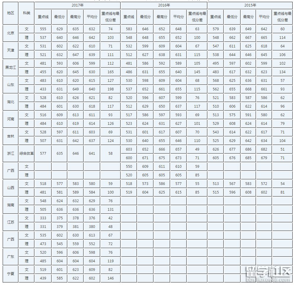 對外經濟貿易大學提前批錄取分數(shù)線(2015-2017)