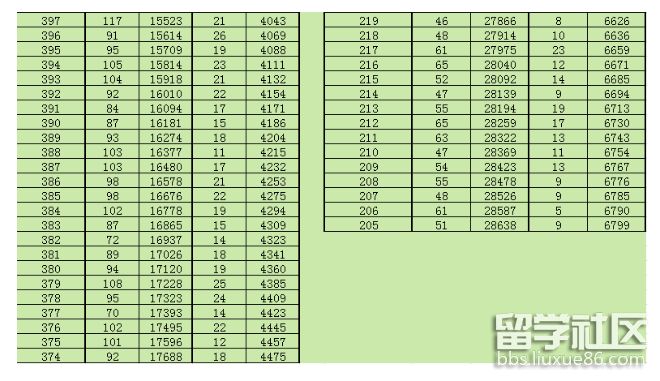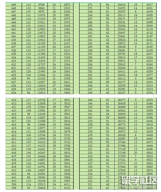 “一分一段”表排位說明