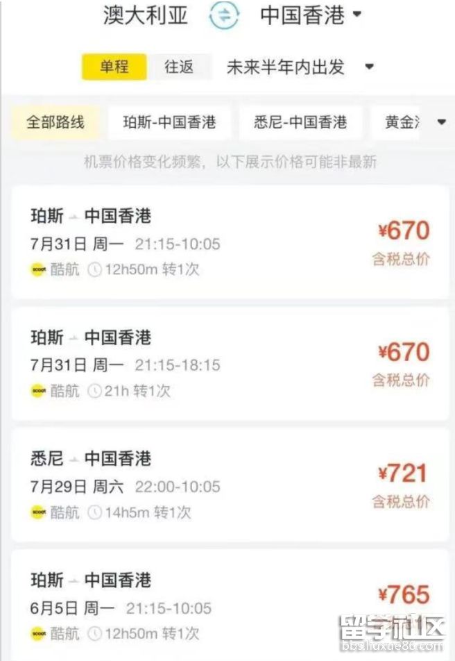 同時,澳洲飛中國的機票價格暴跌,飛中國香港僅需6、7百人民幣。