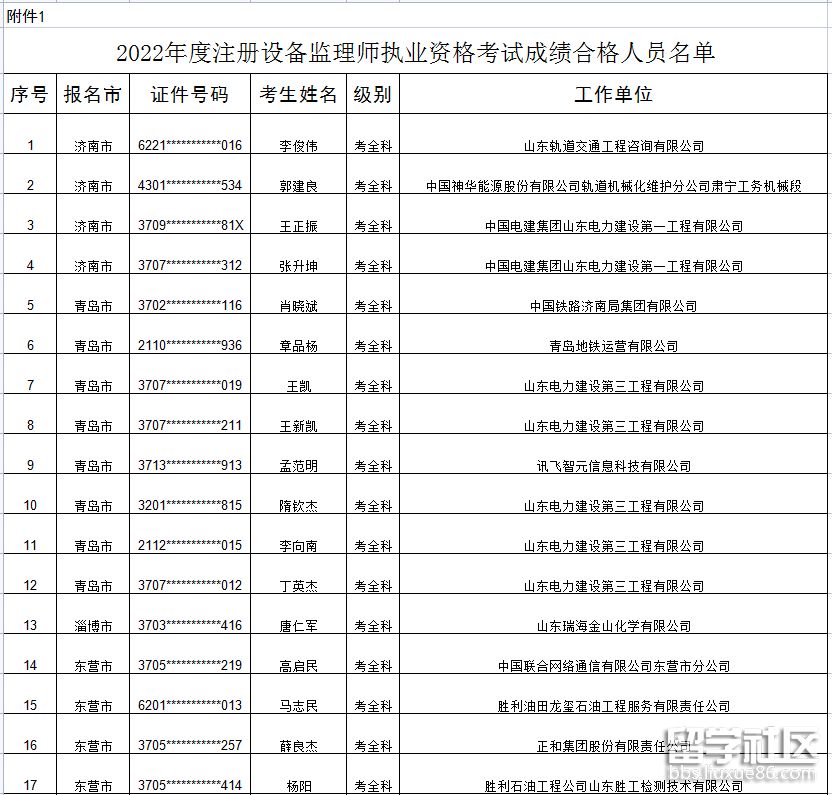 附件:1、2022年度注冊(cè)設(shè)備監(jiān)理師執(zhí)業(yè)資格考試山東省成績(jī)合格人員名單