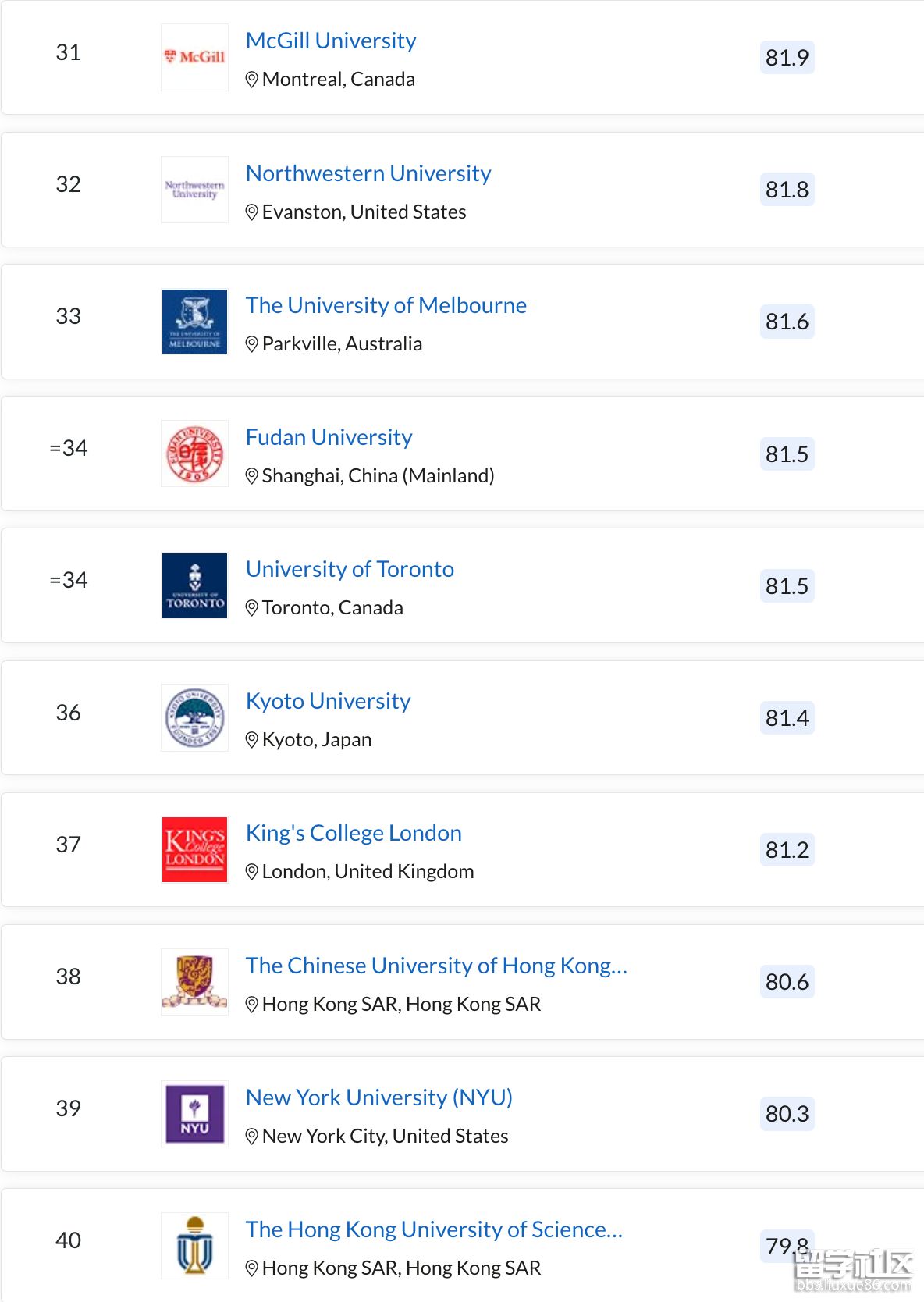 其實(shí)我們看清華和北大的分?jǐn)?shù)情況就能發(fā)現(xiàn),隨著國內(nèi)頂尖院校的國際化建設(shè),在保證學(xué)術(shù)實(shí)力的前提下,這個排名未來還有上升空間。越來越多同學(xué)看到國內(nèi)院校的潛力,這也是考慮國內(nèi)國外雙申、保研、直博等項(xiàng)目的同學(xué)越來越多的原因吧。