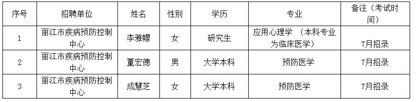 為進一步充實和優(yōu)化麗江市醫(yī)療衛(wèi)生人才隊伍,經市人社、市委編辦核準,麗江市衛(wèi)生健康委直屬的醫(yī)療衛(wèi)生單位分別于2020年1月、3月、7月開展了急需緊缺人員校園招聘、網絡招聘等招聘工作,現(xiàn)對經面試、考察、體檢合格的第二批擬聘人員3人的名單進行公示。