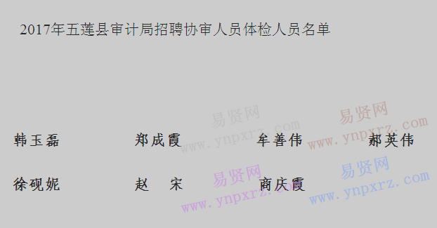 2017年五蓮縣審計(jì)局招聘協(xié)審人員進(jìn)入體檢范圍人員(詳見(jiàn)名單)。