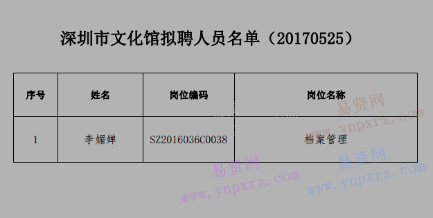 根據(jù)《深圳市市屬事業(yè)單位2016年10月公開(kāi)招聘管理和專業(yè)技術(shù)崗位工作人員公告(20161019)》,現(xiàn)對(duì)深圳市文化館在公開(kāi)招聘中經(jīng)考試、體檢、考察合格的擬聘人員名單予以公示(具體見(jiàn)附件)。