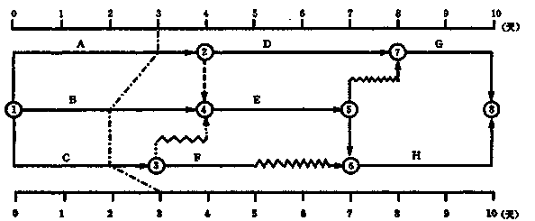 工作C為非關(guān)鍵工作,其總時差及自由時差均為為1天,拖延1天,既不影響后續(xù)工作,又不影響總工期。