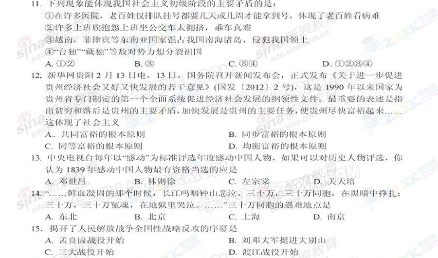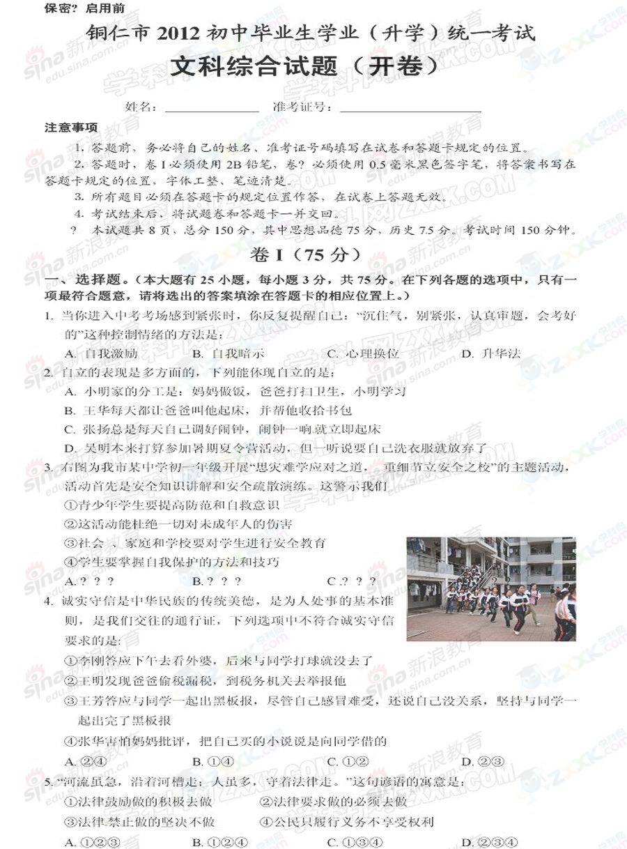 為廣大考生整理了貴州銅仁2012中考文綜試題及答案,供廣大考生參考: