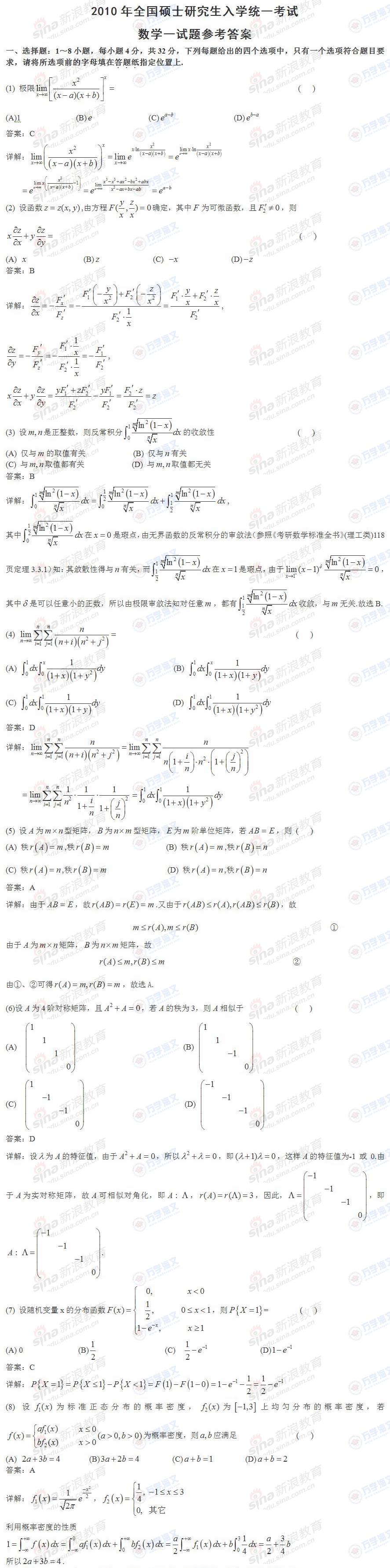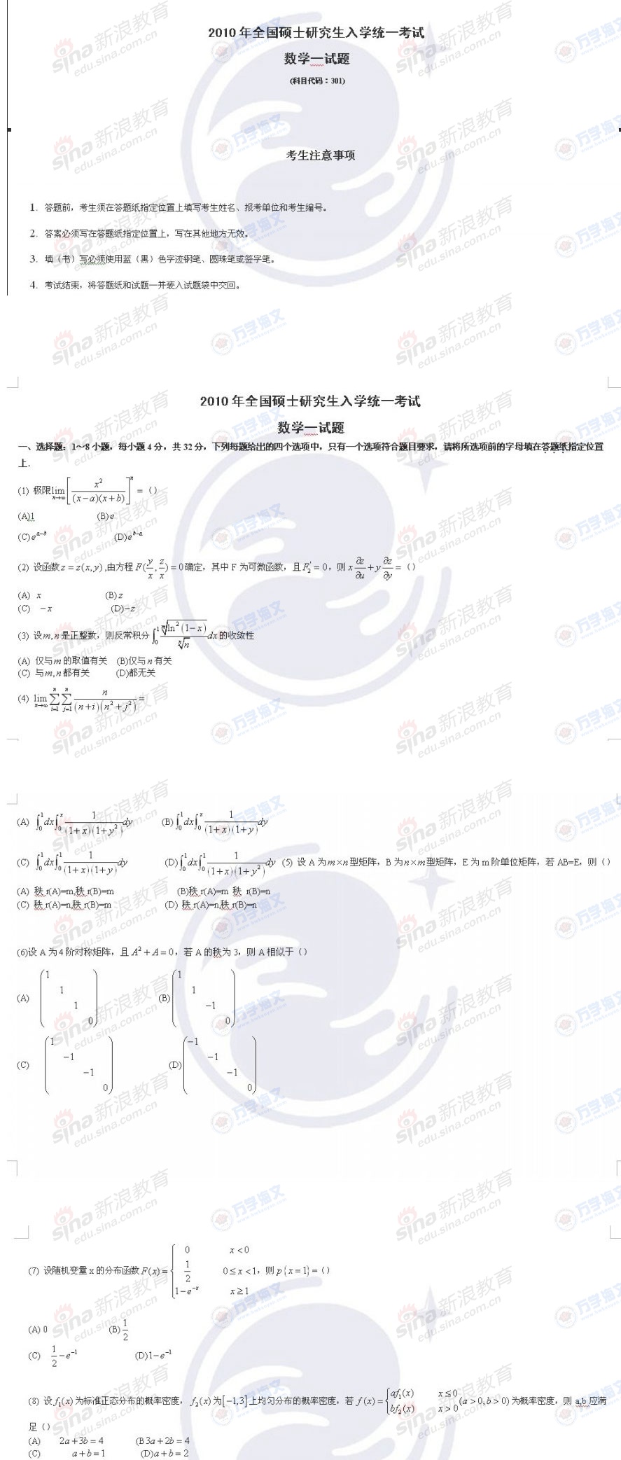 這篇關(guān)于2010年考研試題數(shù)學(xué)一,是特地為大家整理的,希望對(duì)大家有所幫助!