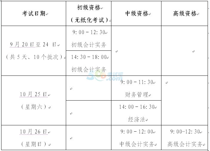 初級(jí)資格考試于9月20—24日舉行;中級(jí)資格、高級(jí)資格考試于10月25—26舉行。