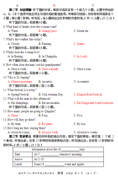 2015年湖北婁底中考英語(yǔ)試卷及答案(已公布)