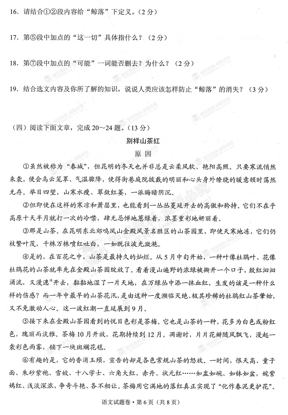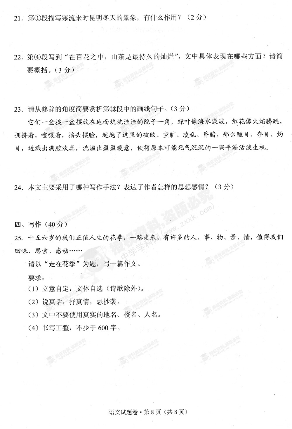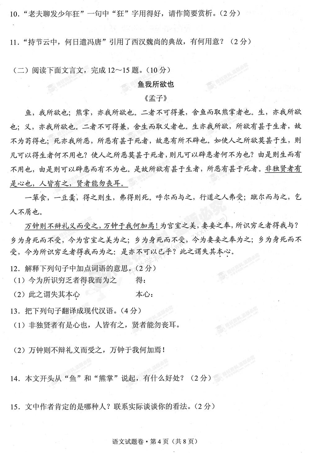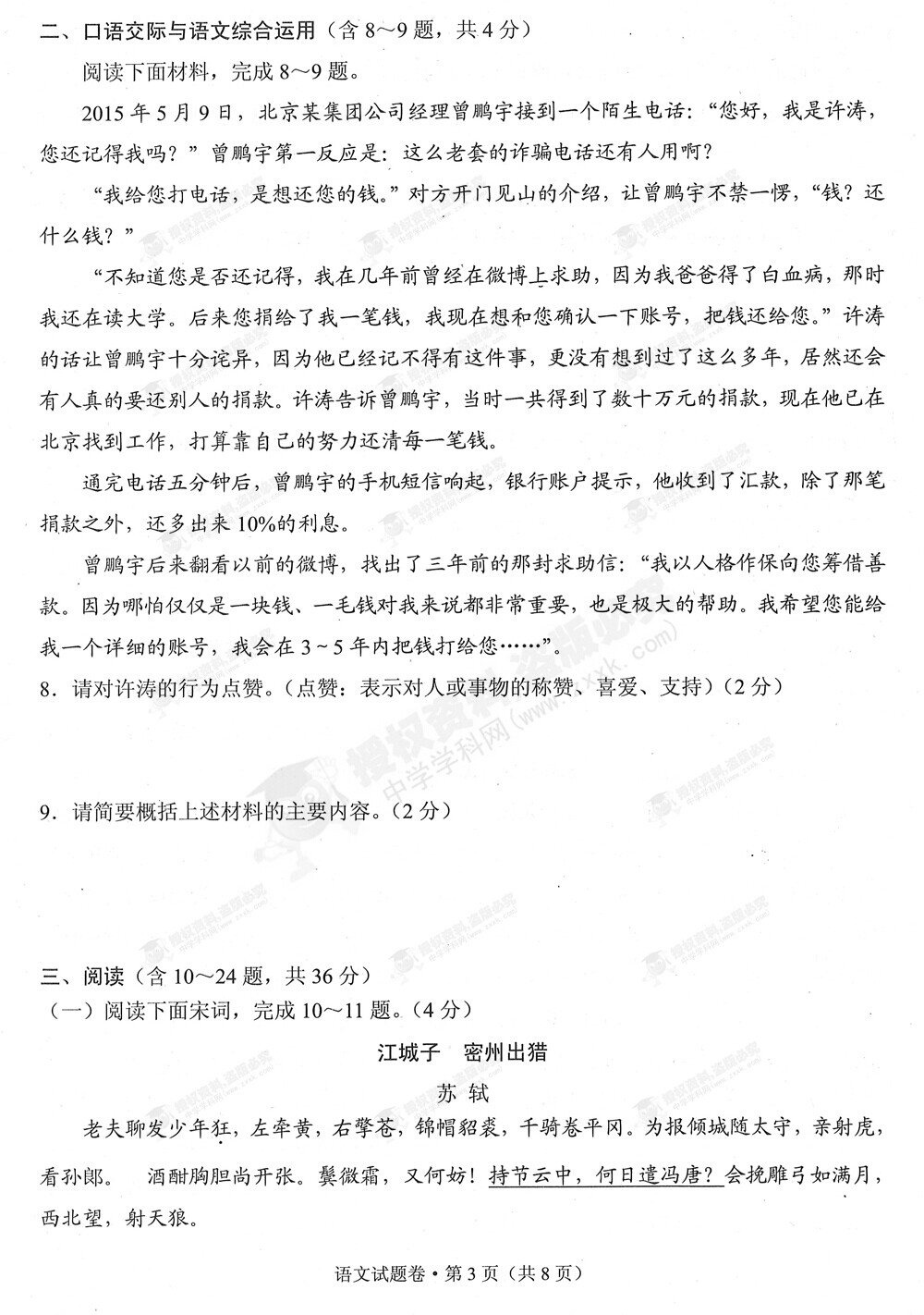 2015年云南中考語文試卷及答案(完整版)