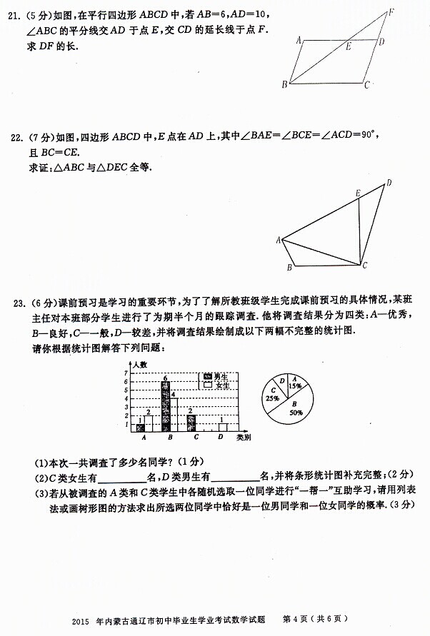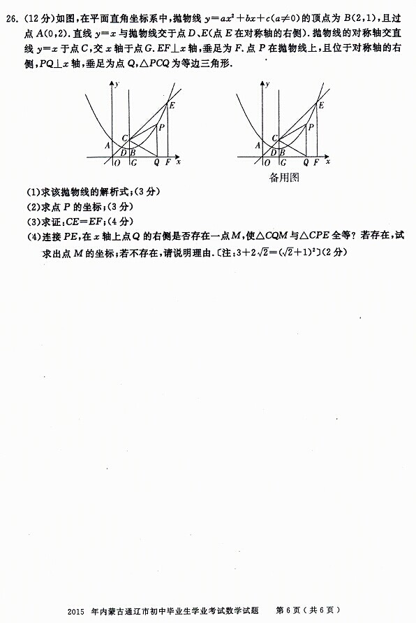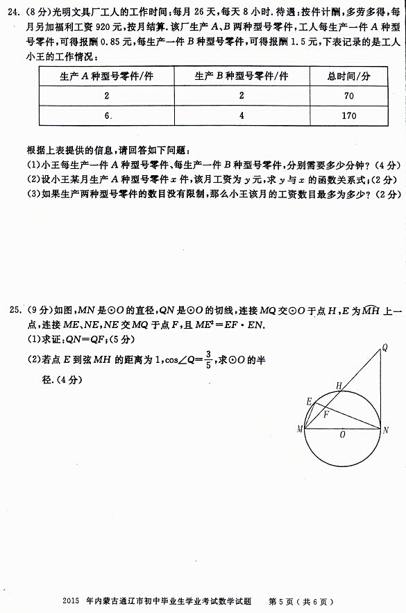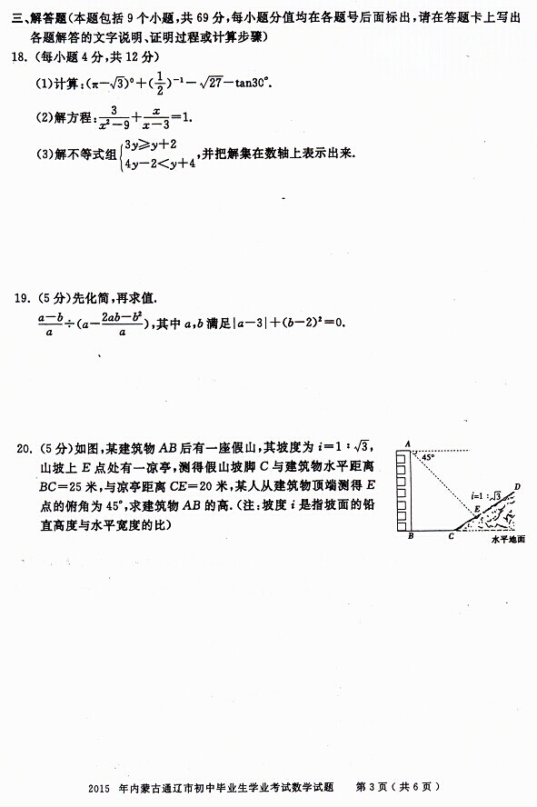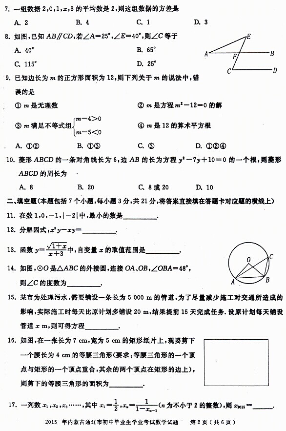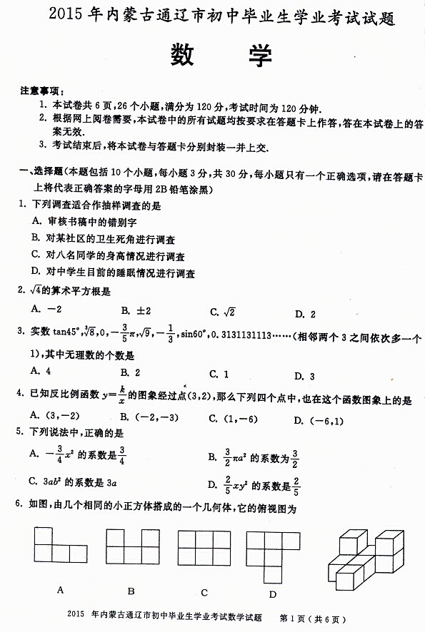2015年內(nèi)蒙古通遼中考數(shù)學試題(已公布)