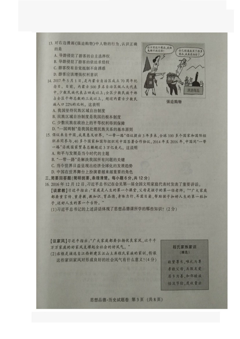 “人生處處是考場(chǎng),今日各為中考忙。斗智斗勇齊亮相,得失成敗走一場(chǎng)??紙?chǎng)瀟灑不虛枉,多年以后話滄桑!”2017年江西南昌中考政治科目考試已落下帷幕,中考頻道在考后第一時(shí)間提供2017年江西南昌中考政治試卷、南昌中考政治答案解析,供廣大考生參考估分。預(yù)祝各位考生取得優(yōu)異的成績(jī),順利考入理想的高中!稍后我們也將提供江西南昌中考成績(jī)查詢、中考分?jǐn)?shù)線,敬請(qǐng)關(guān)注!