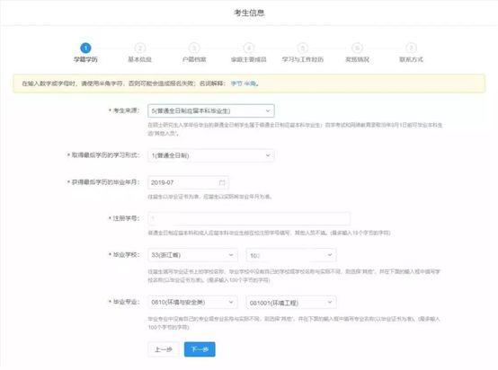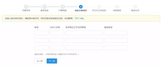2.順次填寫學籍學歷→基本信息→戶籍檔案→家庭主要成員→學習與工作經(jīng)歷→獎懲情況→聯(lián)系方式