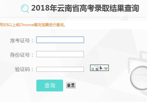 2018云南高考錄取情況查詢?nèi)肟陂_通 點擊進入