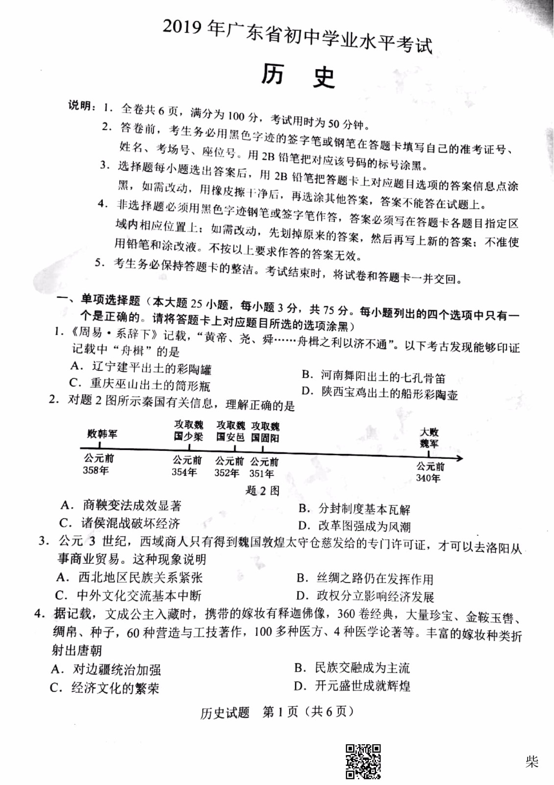2019年廣東珠海中考?xì)v史考試已結(jié)束,中考頻道搜集整理發(fā)布了“2019年廣東珠海中考?xì)v史試卷”,僅供考生們參考學(xué)習(xí),小編預(yù)祝大家取得優(yōu)異的成績(jī)!