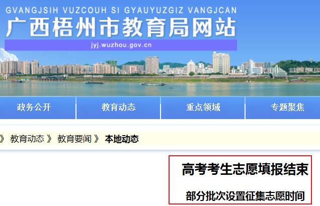 從廣西梧州市教育局獲悉,廣西高考考生志愿填報(bào)結(jié)束,部分批次設(shè)置征集志愿時(shí)間,廣西高校招生錄取共設(shè)置8個(gè)批次,部分批次預(yù)留征集志愿時(shí)間。具體情況如下:
