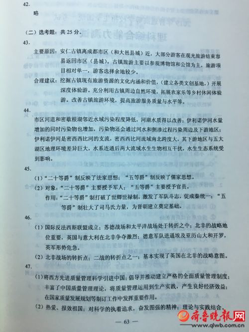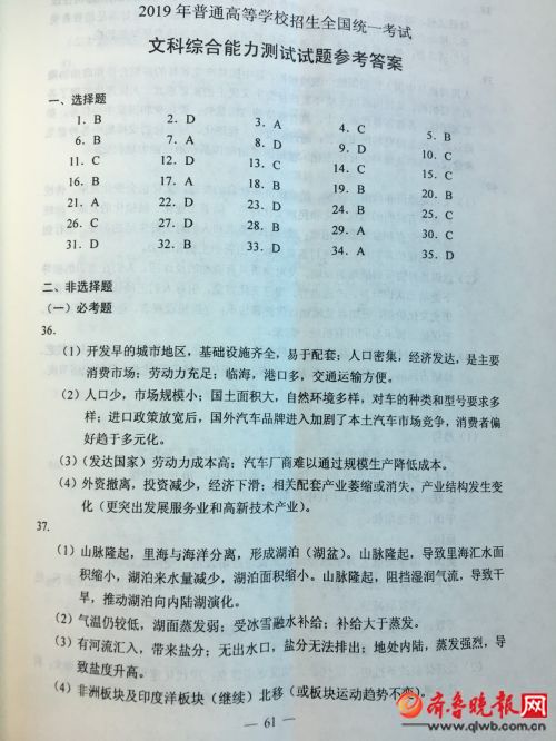 江西高考頻道從齊魯晚報網(wǎng)了解到,2019年江西高考文綜答案已公布,江西高考文綜答案具體如下: