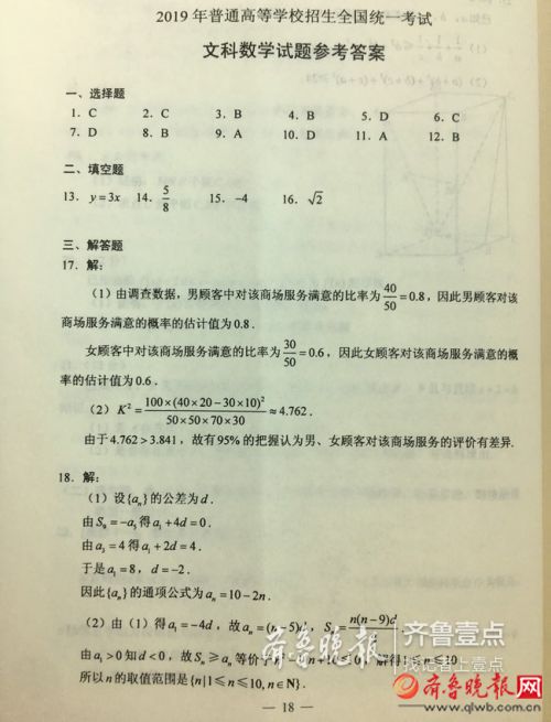 湖北高考頻道從齊魯晚報網(wǎng)了解到,2019年湖北高考文科數(shù)學(xué)答案已公布,湖北高考文科數(shù)學(xué)答案具體如下: