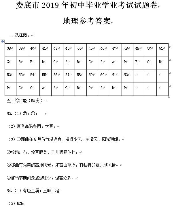 2019年湖南婁底中考地理考試已結(jié)束,中考頻道搜集整理發(fā)布了“2019年湖南婁底中考地理答案”,供考生們參考學(xué)習(xí),小編預(yù)祝大家取得優(yōu)異的成績!