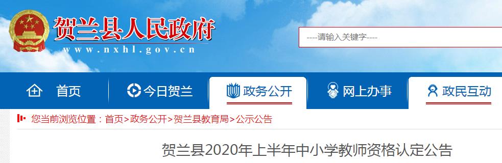 從賀蘭縣人民政府獲悉,2020年上半年寧夏銀川賀蘭縣中小學(xué)教師資格認(rèn)定公告已公布,申報(bào)時(shí)間為6月7日-6月19日,具體詳情如下: