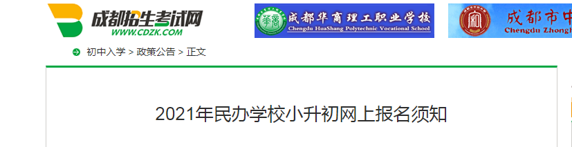 從成都招生考試網(wǎng) 了解到,2021年成都市小升初民辦學(xué)校招生實(shí)行網(wǎng)上報(bào)名。自愿就讀民辦初中的小學(xué)畢業(yè)生須完成網(wǎng)上報(bào)名,才能參加民辦初中的學(xué)位確定,現(xiàn)將有關(guān)事宜通知如下: