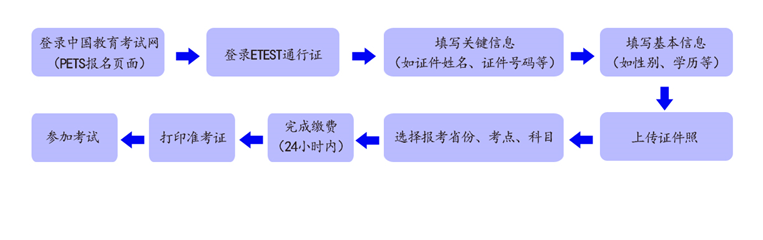 2021下半年陜西公共英語二級(jí)報(bào)名入口開通時(shí)間為7月6日9時(shí)至7月8日16時(shí),陜西考生需要登錄報(bào)名網(wǎng)站(網(wǎng)址:http://pets.neea.edu.cn/)完成網(wǎng)上注冊(cè)、科目選擇及網(wǎng)上繳費(fèi)??忌稍谔峤粓?bào)名時(shí)同時(shí)繳費(fèi),也可稍后繼續(xù)繳費(fèi)。報(bào)名時(shí)未一次性完成繳費(fèi)流程的考生可登陸PETS報(bào)名網(wǎng)站“用戶中心-我的報(bào)考”繼續(xù)完成繳費(fèi),繳費(fèi)期限為提交報(bào)名24小時(shí)之內(nèi),超過時(shí)間未繳費(fèi)訂單自動(dòng)取消??忌稍诶U費(fèi)前修改或刪除訂單,重新選擇報(bào)考;一旦繳費(fèi)成功,訂單不能取消。因考生個(gè)人原因造成的錯(cuò)報(bào)、漏報(bào)以及考試當(dāng)天無法參加考試等情況,教育部考試中心不予退費(fèi)??忌?qǐng)參照以下操作流程進(jìn)行報(bào)名。