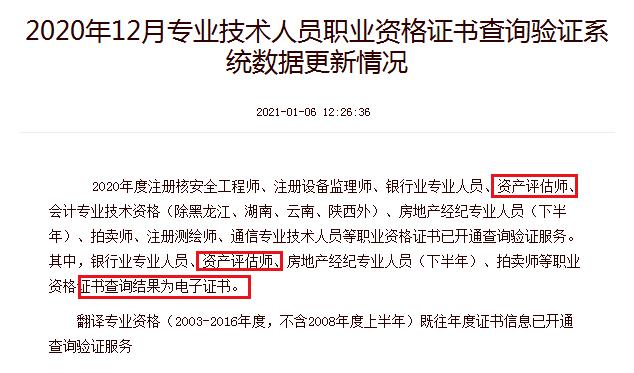 2020年安徽資產(chǎn)評估師職業(yè)資格證書已開通查詢驗證服務,查詢結(jié)果為電子證書。