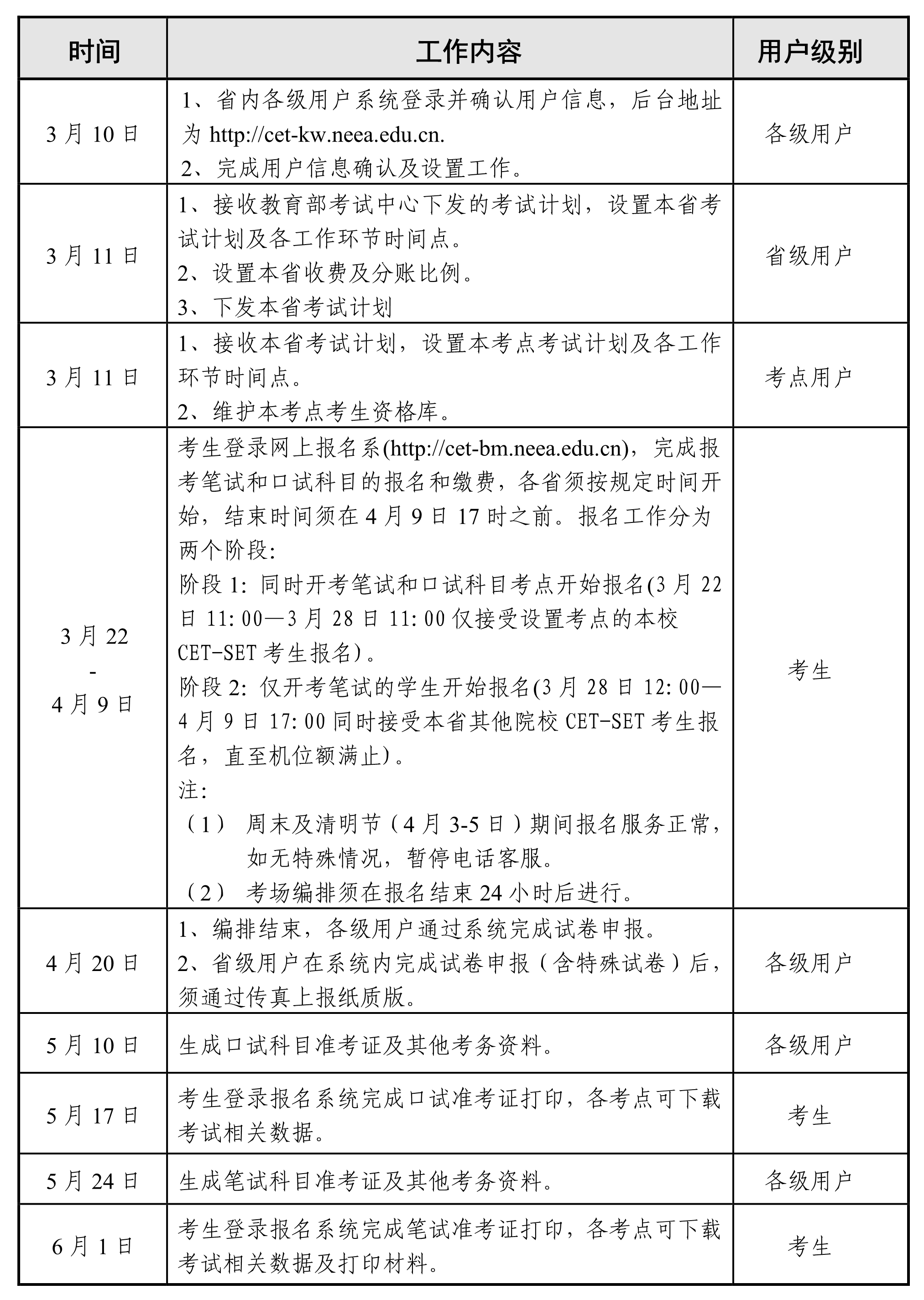 1.口試科目準(zhǔn)考證打印:5月17日起,考生可自行登錄全國大學(xué)英語四、六級考試網(wǎng)站(網(wǎng)址:http://cet-bm.neea.edu.cn)首頁,通過“快速打印準(zhǔn)考證”,完成口試科目準(zhǔn)考證的打印??荚嚲唧w時間及地點均以準(zhǔn)考證上所示為準(zhǔn),不得更改。