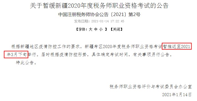 關于暫緩新疆2020年度稅務師職業(yè)資格考試的公告